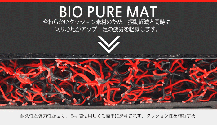 ●やわらかいクッション素材のため、振動軽減と同時に 乗り心地がアップ!足の疲労を軽減します。